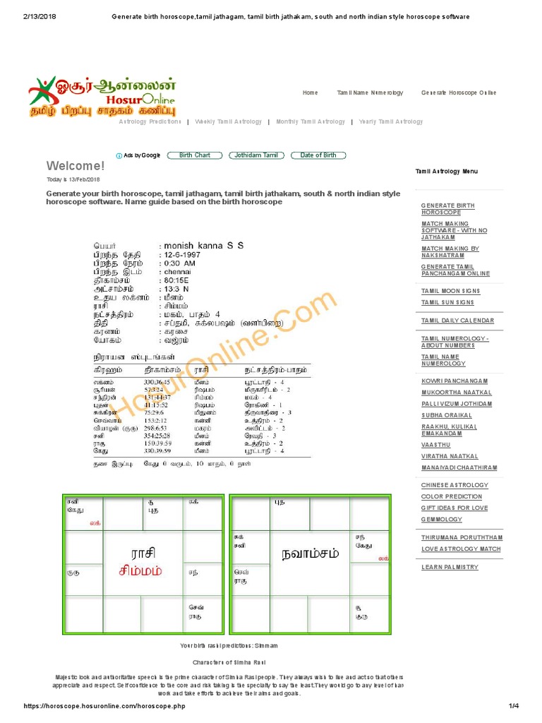 Generate Birth Horoscope,Tamil Jathagam, Tamil Birth Jathakam, South and North Indian Style Horoscope Software | Astrology